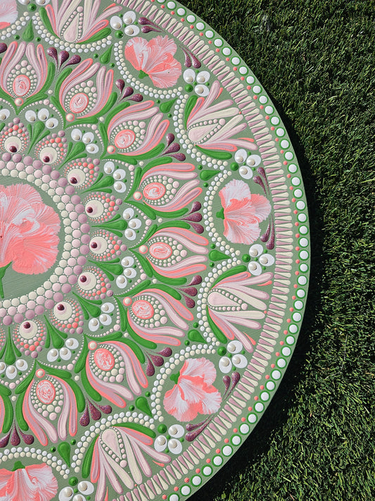 30” Hand-Painted Dot Mandala – Pastel Petal Bloom